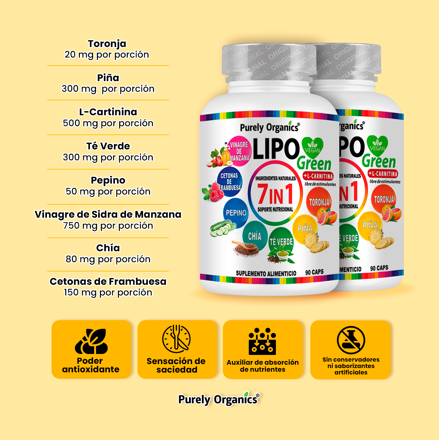 LipoGreen is a carefully selected blend of organic superfoods, each known for its natural properties. This supplement is designed to complement your daily wellness regimen, in harmony with a balanced diet and regular exercise.