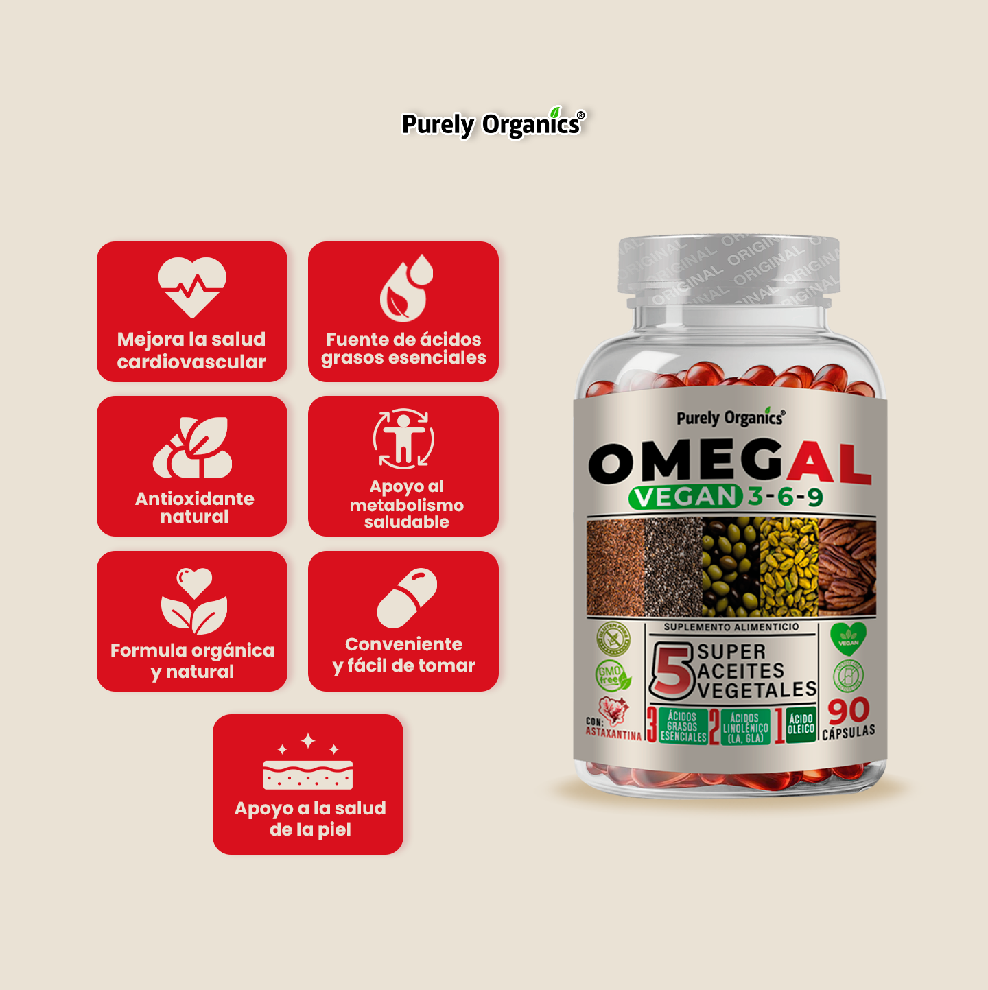 OMEGAL is an advanced formula that provides omega-3, omega-6, and omega-9 essential fatty acids, all plant-derived and highly bioavailable. This unique combination of omegas is designed to provide a broad spectrum of health benefits, including supporting cardiovascular health, improving brain function, and reducing inflammation.