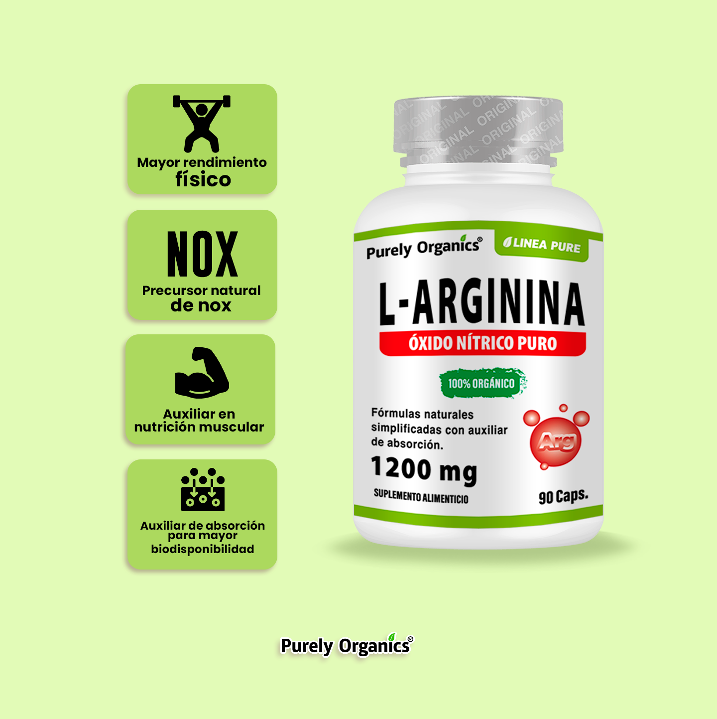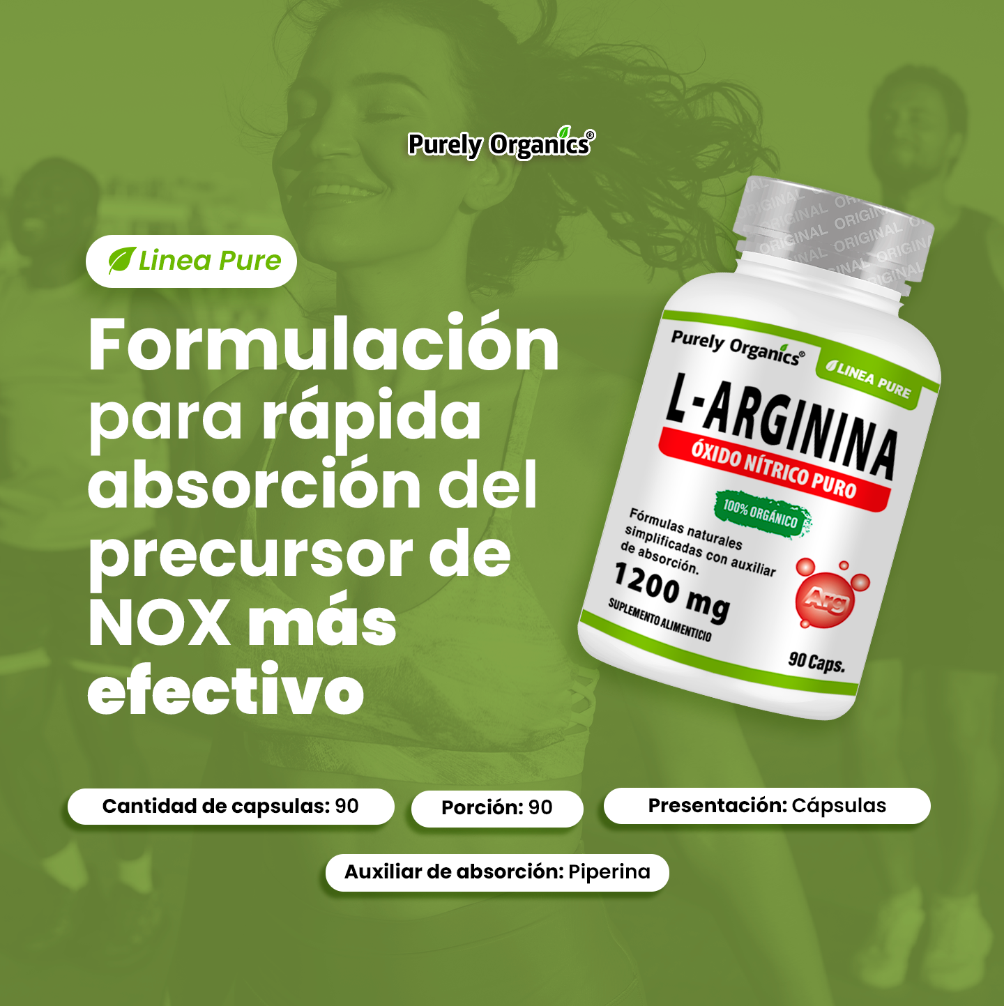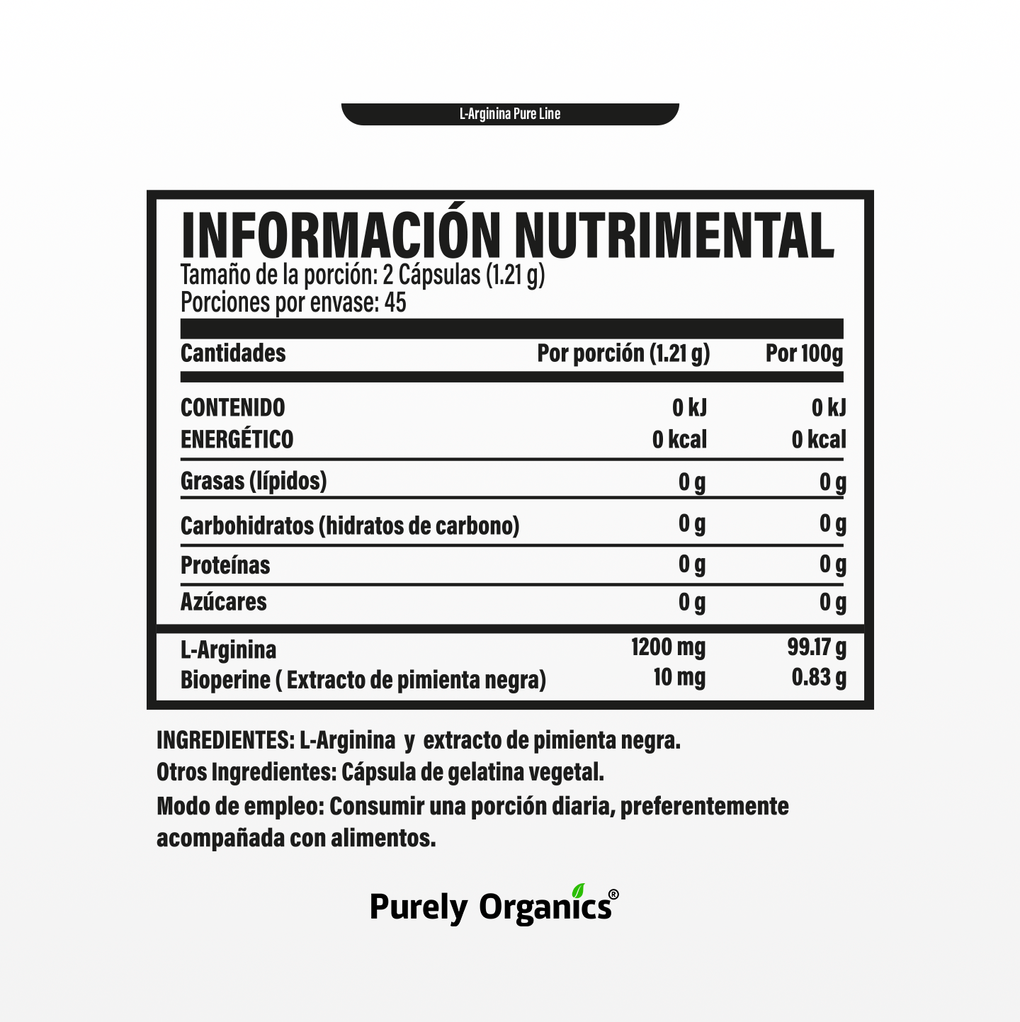L-Arginine Pure with 90 Capsules. 1200mg formula with Piperine (Black Pepper) to maximize absorption.