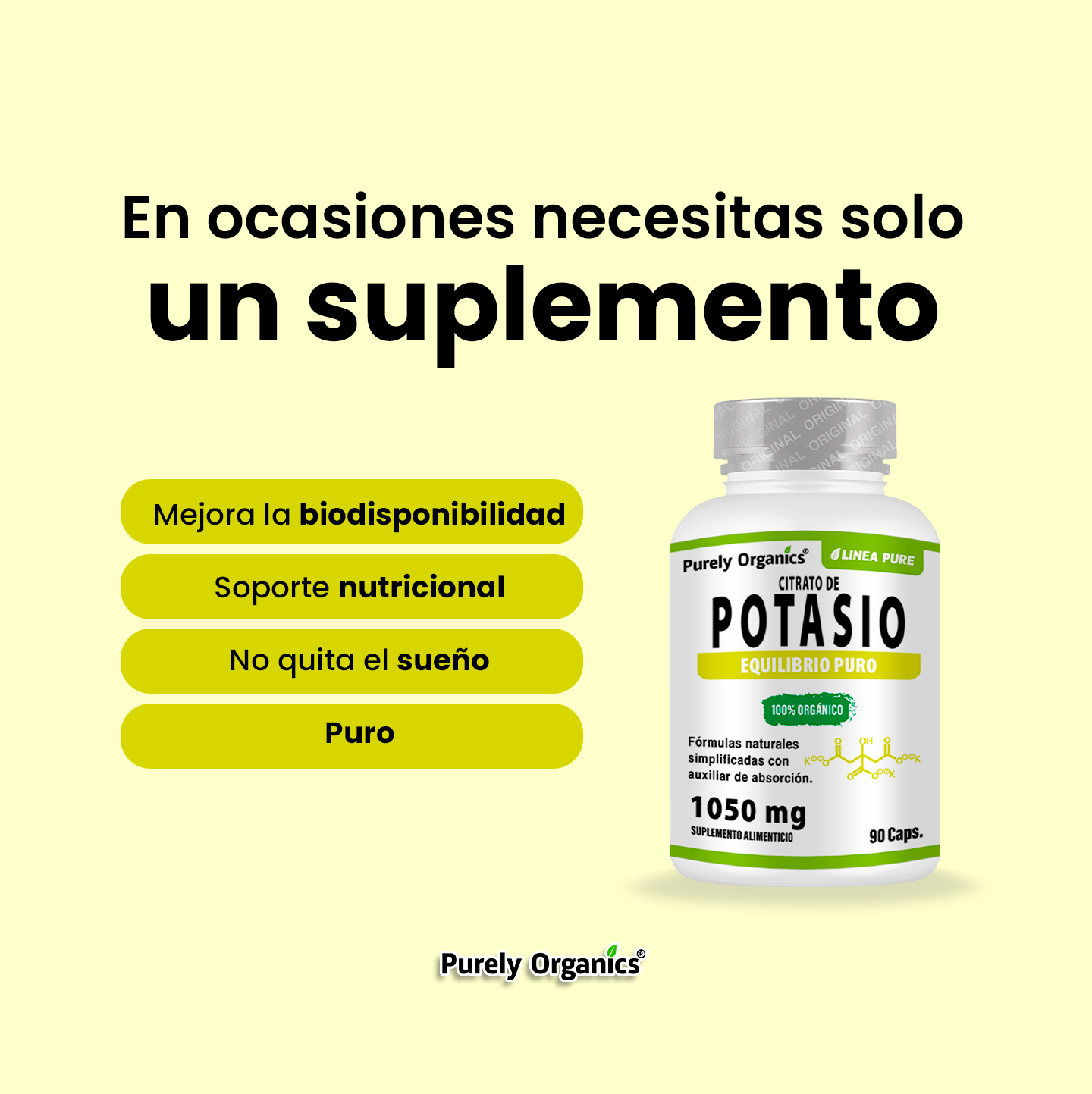 Purely Organics Potassium Citrate is notable for containing 1050mg of Potassium Citrate and 5mg of Piperine (black pepper) per capsule. This combination promotes optimal absorption and utilization of potassium, a key mineral for the body's electrolyte balance.